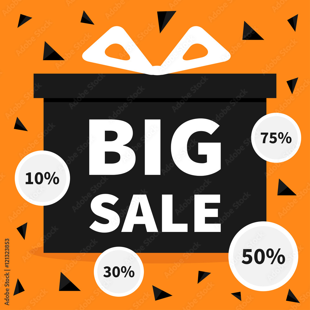 Gift Box With Ribbon And Bow Present Giftbox Big Sale Halloween Advertising Banner Poster Round Circle 10 30 50 75 Percent Off Sticker Set Special Offer Orange Triangle Background Flat Stock Vector Adobe Stock